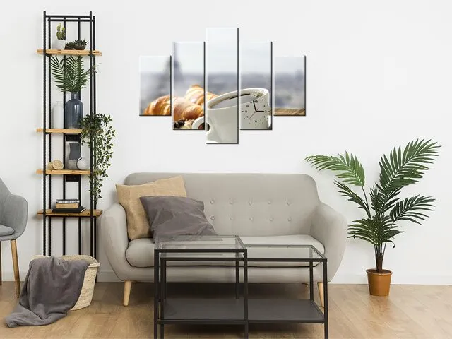 ZP1360A_5H Luxusný obraz s hodinami Romantické raňajky |