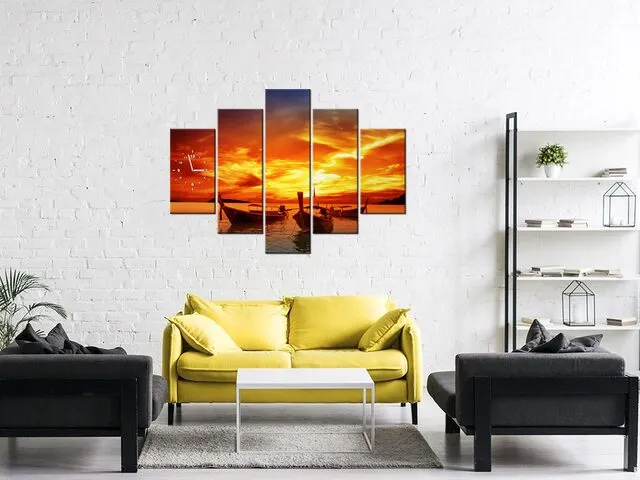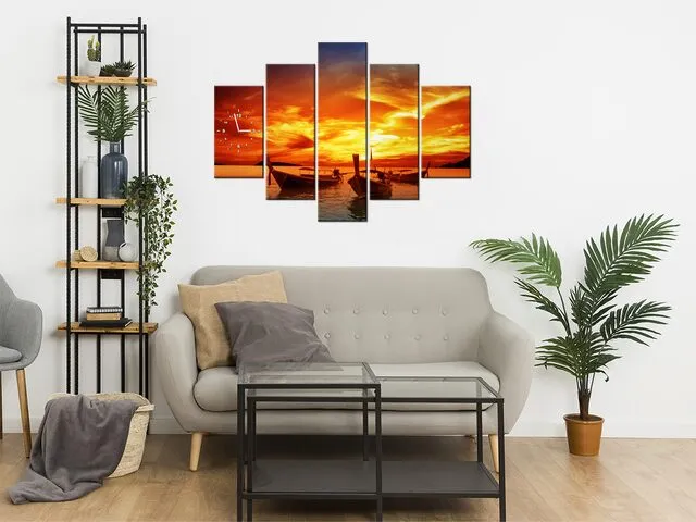 Úvod » Obrazy » Obrazy s hodinami » Luxusný obraz s hodinami Západ slnka nad Thajskom