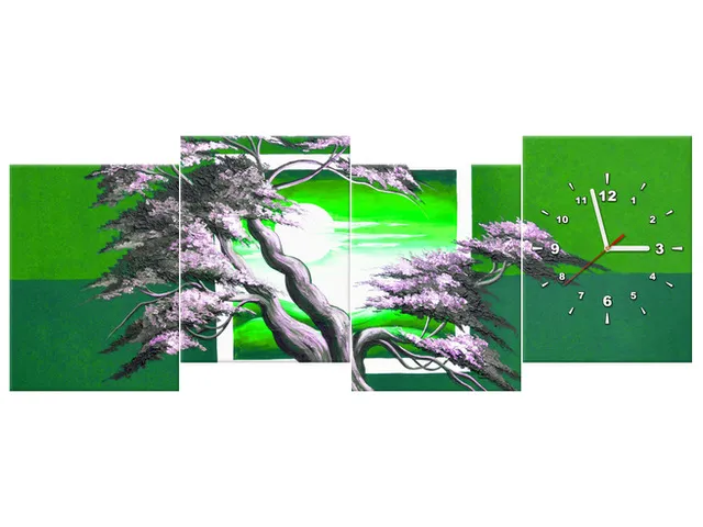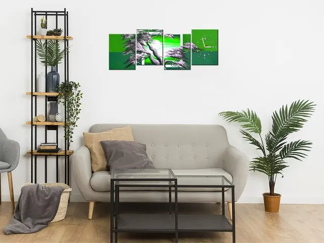 Úvod » Obrazy » Obrazy s hodinami » Luxusný obraz s hodinami Zelený západ slnka