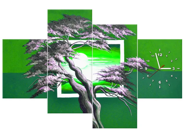 Úvod » Obrazy » Obrazy s hodinami » Luxusný obraz s hodinami Zelený západ slnka
