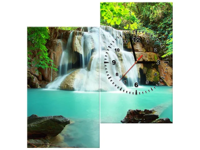 Úvod » Obrazy » Obrazy na plátne » Príroda » Vodopád » Luxusný obraz s hodinami na plátne Vodopád