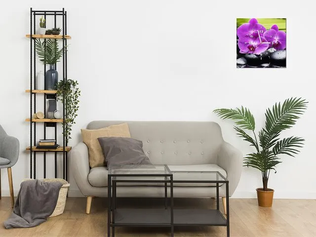 ZP1136A_2J Luxusný obraz s hodinami na stenu Kamene a orchidey |