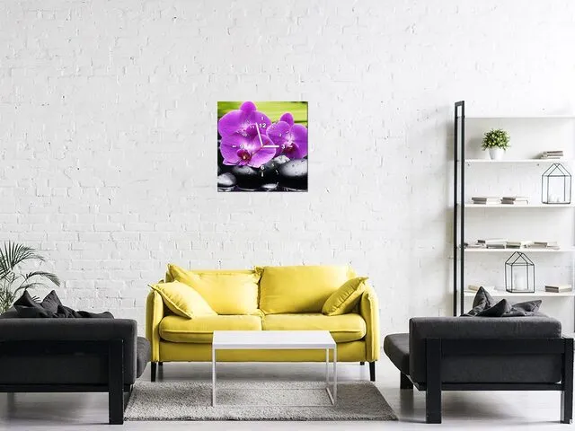 Úvod » Obrazy » Obrazy s hodinami » Luxusný obraz s hodinami na stenu Kamene a orchidey