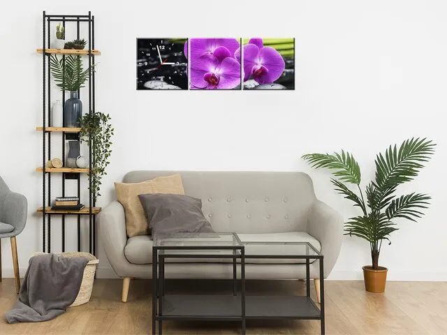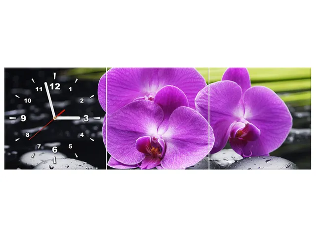 Luxusný obraz s hodinami na stenu Kamene a orchidey
