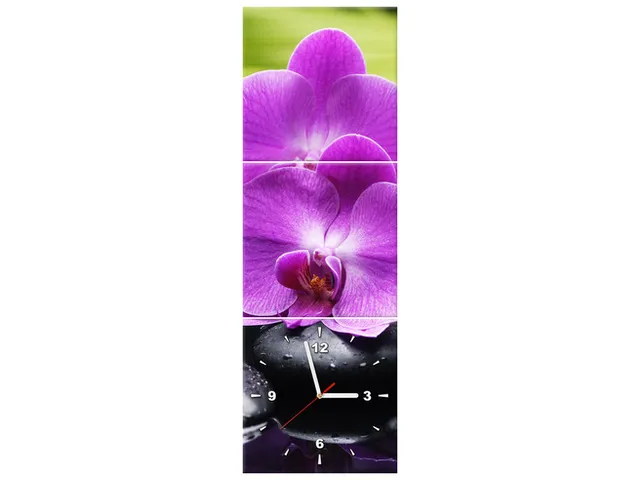 Úvod » Obrazy » Obrazy s hodinami » Luxusný obraz s hodinami na stenu Kamene a orchidey