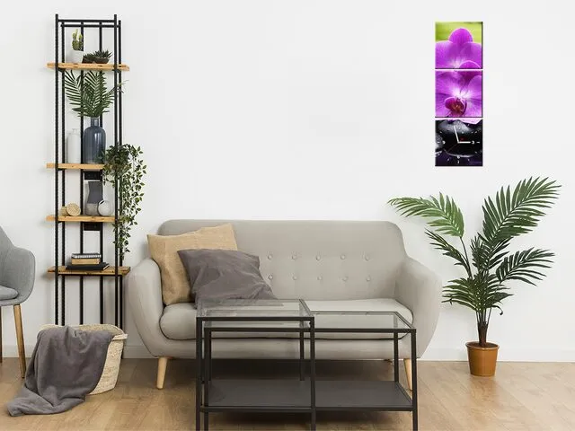 Luxusný obraz s hodinami na stenu Kamene a orchidey