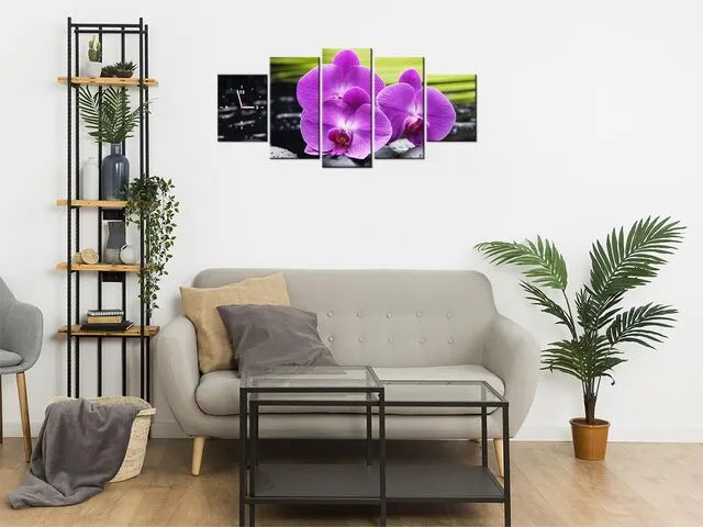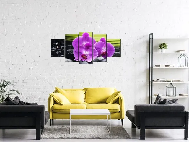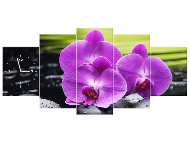 Luxusný obraz s hodinami na stenu Kamene a orchidey