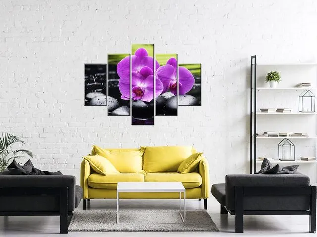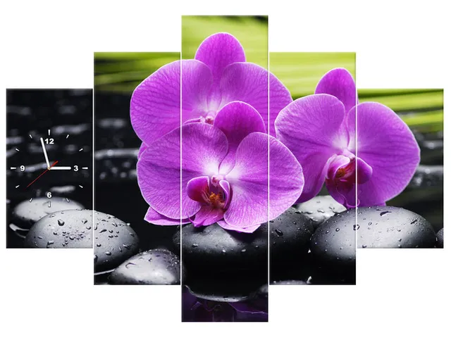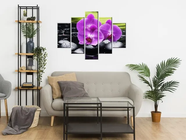 Luxusný obraz s hodinami na stenu Kamene a orchidey