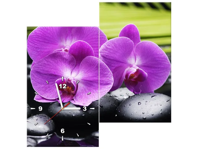 Úvod » Obrazy » Obrazy s hodinami » Luxusný obraz s hodinami na stenu Kamene a orchidey