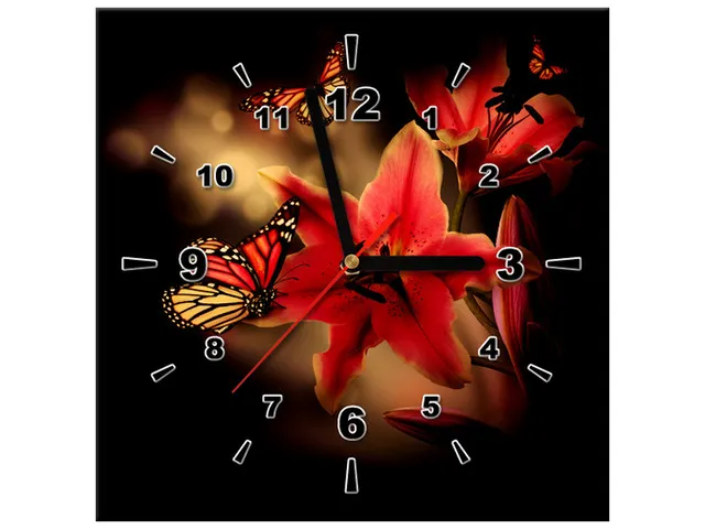 Úvod » Obrazy » Obrazy s hodinami » Luxusný obraz s hodinami na stenu Motýle a ľalia