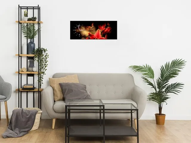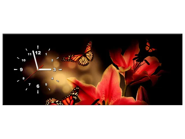 Barion Pixel Luxusný obraz s hodinami na stenu Motýle a ľalia