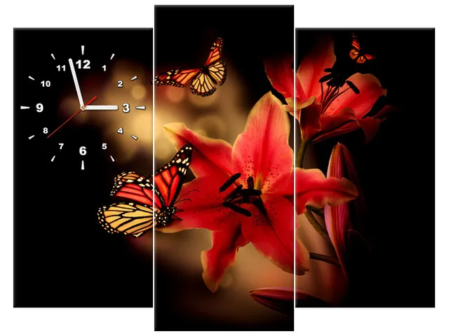 Úvod » Obrazy » Obrazy s hodinami » Luxusný obraz s hodinami na stenu Motýle a ľalia