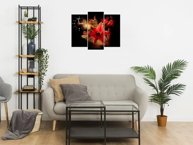 Luxusný obraz s hodinami na stenu Motýle a ľalia