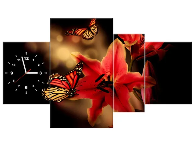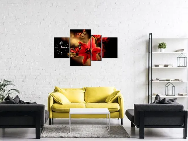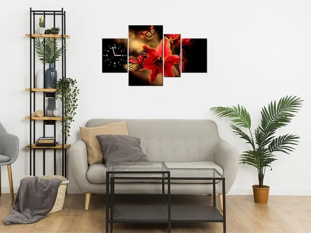 Luxusný obraz s hodinami na stenu Motýle a ľalia