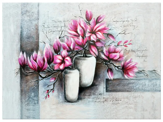 Úvod » Obrazy » Obrazy ručne maľované » Magnólie vo vázach Ručne maľovaný obraz