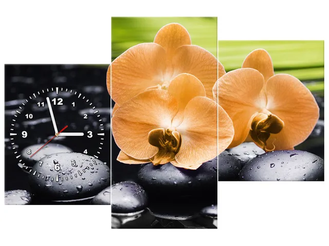 Úvod » Obrazy » Obrazy s hodinami » Moderné hodiny na stenu Oranžová orchidea