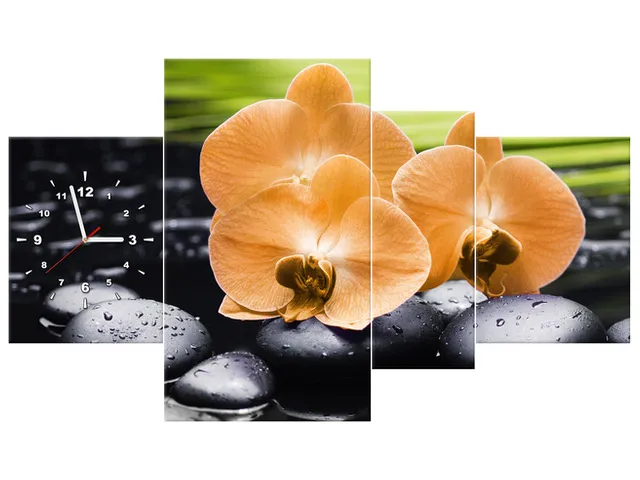 Úvod » Obrazy » Obrazy s hodinami » Moderné hodiny na stenu Oranžová orchidea