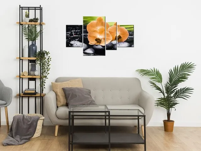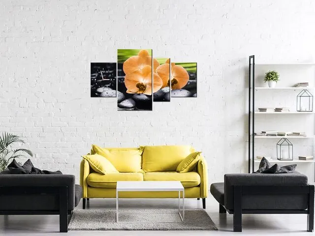ZP1713A_4AN Moderné hodiny na stenu Oranžová orchidea |