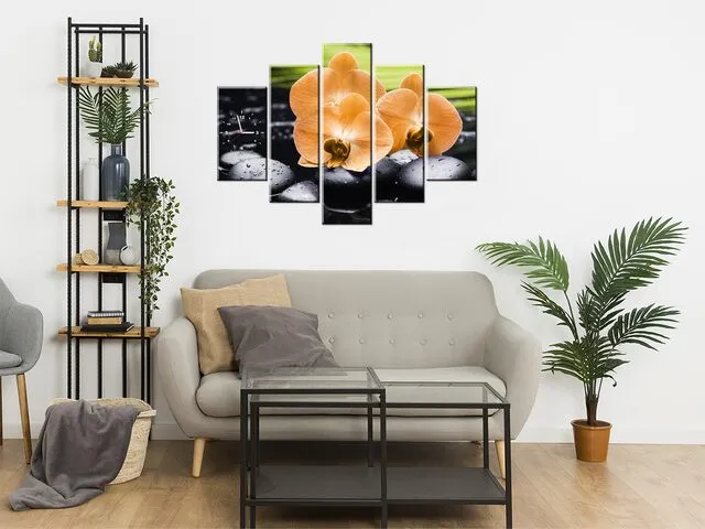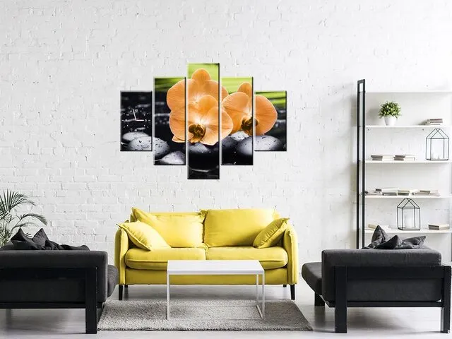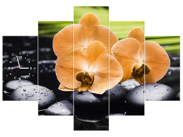 Úvod » Obrazy » Obrazy s hodinami » Moderné hodiny na stenu Oranžová orchidea