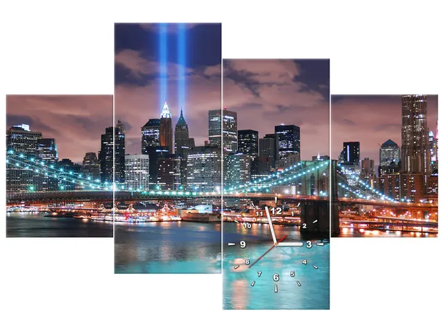 Úvod » Obrazy » Obrazy s hodinami » Moderné hodiny na stenu Panoráma Manhattanu
