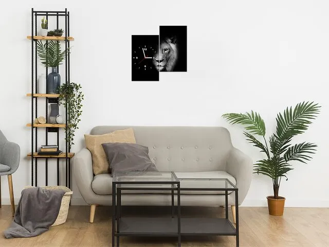 Úvod » Obrazy » Obrazy s hodinami » Moderné nástenné hodiny Lev v tieni