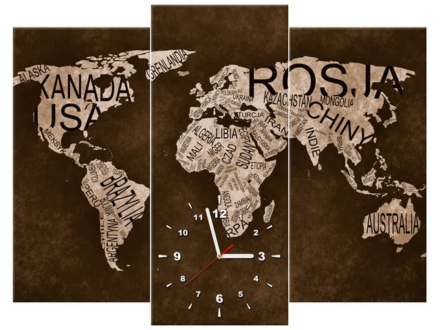 Úvod » Obrazy » Obrazy s hodinami » Moderné nástenné hodiny Mapa sveta