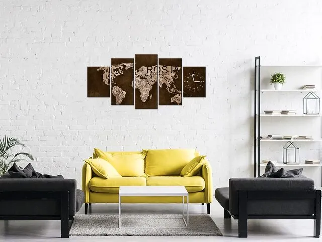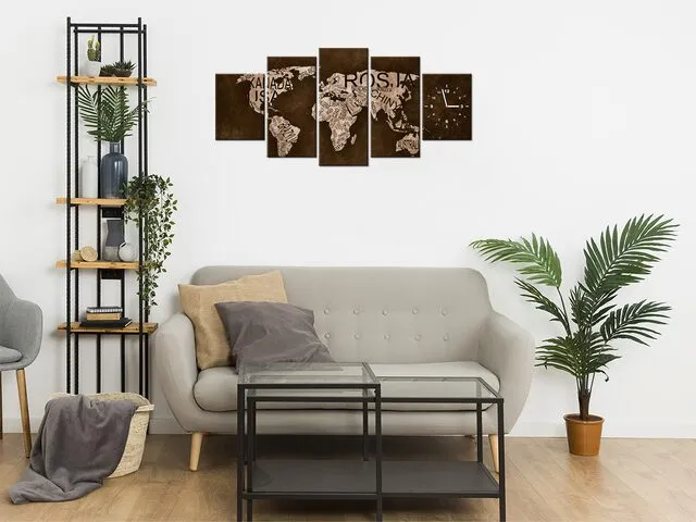 Úvod » Obrazy » Obrazy s hodinami » Moderné nástenné hodiny Mapa sveta