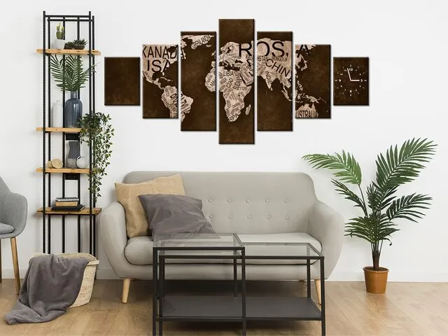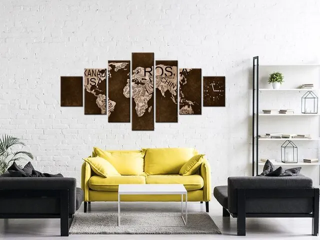 Úvod » Obrazy » Obrazy s hodinami » Moderné nástenné hodiny Mapa sveta