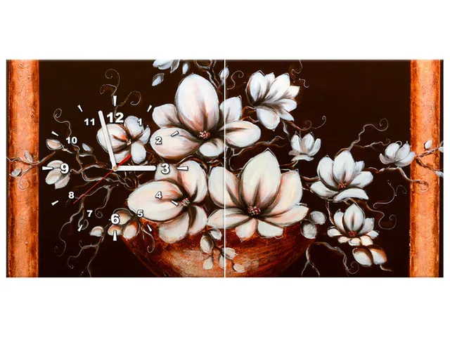 Úvod » Obrazy » Obrazy s hodinami » Moderné nástenné hodiny Váza magnólií III