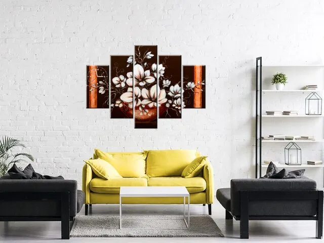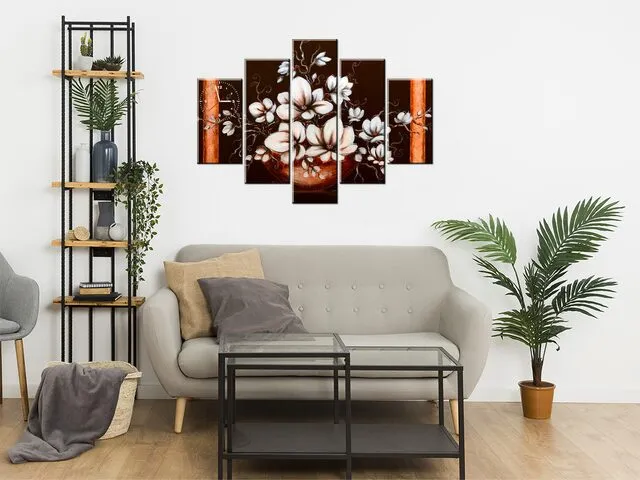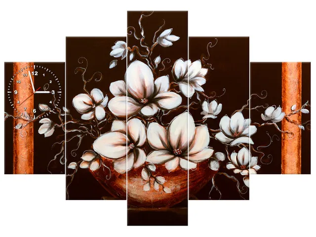 Úvod » Obrazy » Obrazy s hodinami » Moderné nástenné hodiny Váza magnólií III