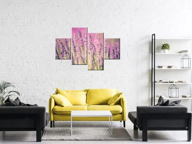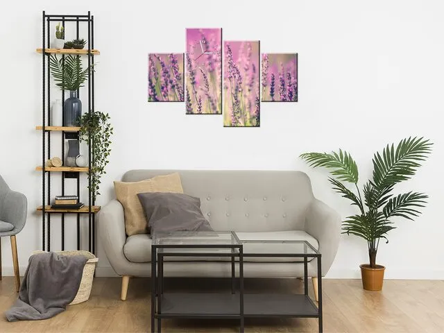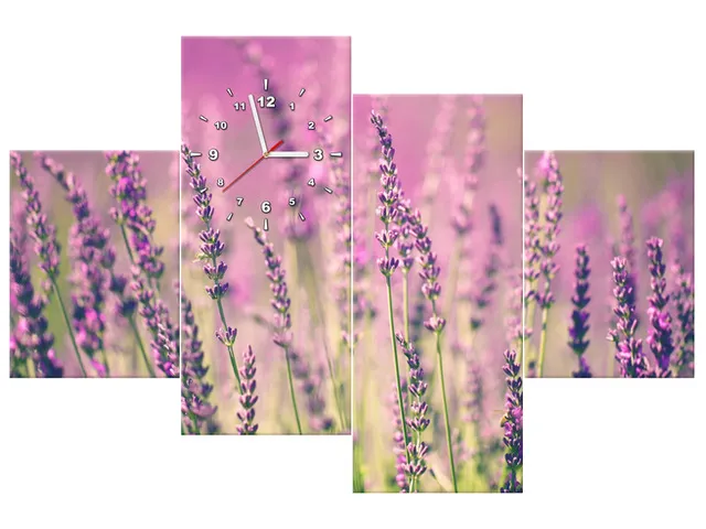 Úvod » Obrazy » Obrazy s hodinami » Moderné nástenné hodiny na plátne Levanduľa