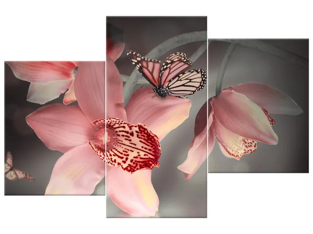 Úvod » Obrazy » Obrazy na plátne » Kvety » Moderný obraz Motýľ na orchidey