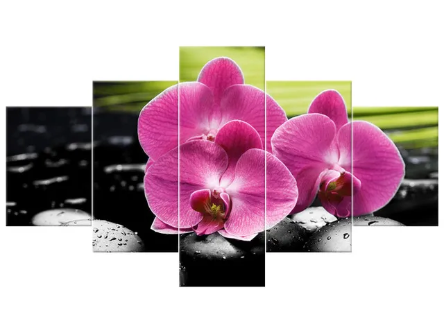 1866A_5D Moderný obraz Orchidey na kameňoch |