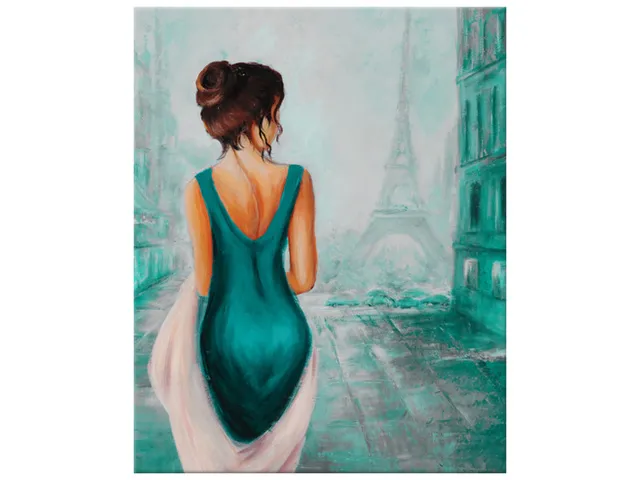 Úvod » Obrazy » Obrazy na plátne » Príroda » Moderný obraz Prechádzka v Paríži v zelenom