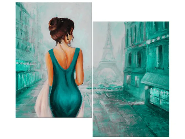 Úvod » Obrazy » Obrazy na plátne » Príroda » Moderný obraz Prechádzka v Paríži v zelenom