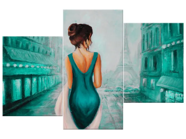 Úvod » Obrazy » Obrazy na plátne » Príroda » Moderný obraz Prechádzka v Paríži v zelenom