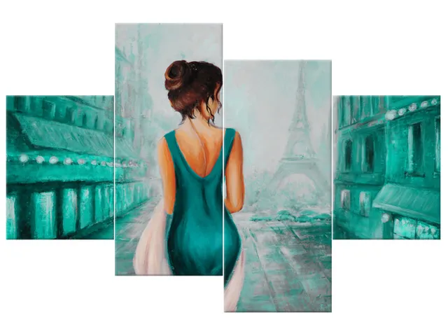 4684A_4F Moderný obraz Prechádzka v Paríži v zelenom |