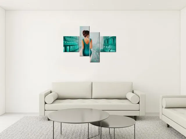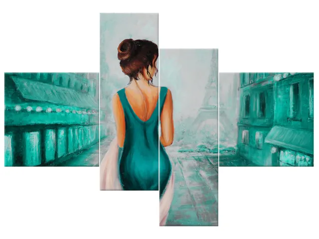 4684A_4K Moderný obraz Prechádzka v Paríži v zelenom |