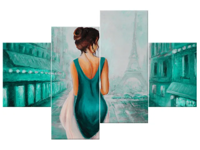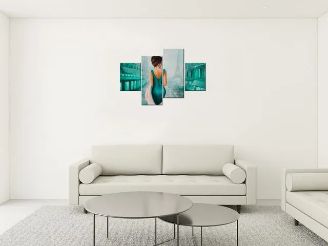 4684A_4K Moderný obraz Prechádzka v Paríži v zelenom |