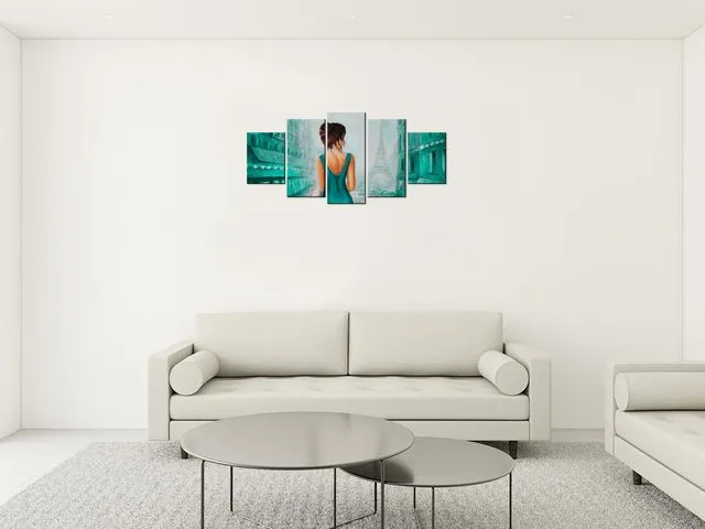 4684A_5K Moderný obraz Prechádzka v Paríži v zelenom |