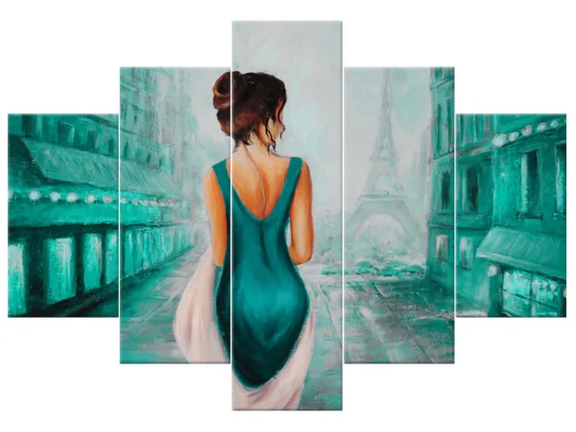 4684A_5F Moderný obraz Prechádzka v Paríži v zelenom |