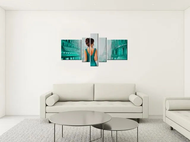 4684A_5F Moderný obraz Prechádzka v Paríži v zelenom |