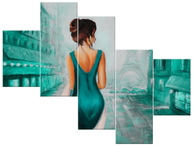 4684A_5D Moderný obraz Prechádzka v Paríži v zelenom |