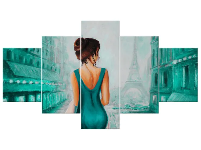 4684A_5K Moderný obraz Prechádzka v Paríži v zelenom |