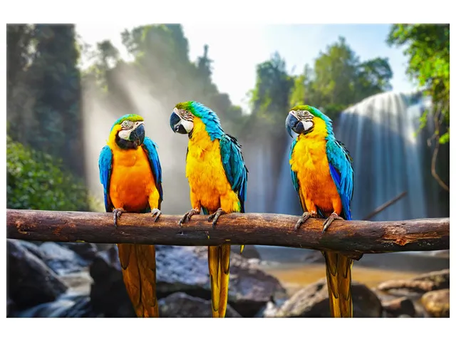 Úvod » Obrazy » Obrazy na plátne » Zvieratá » Moderný obraz Tri papagáje