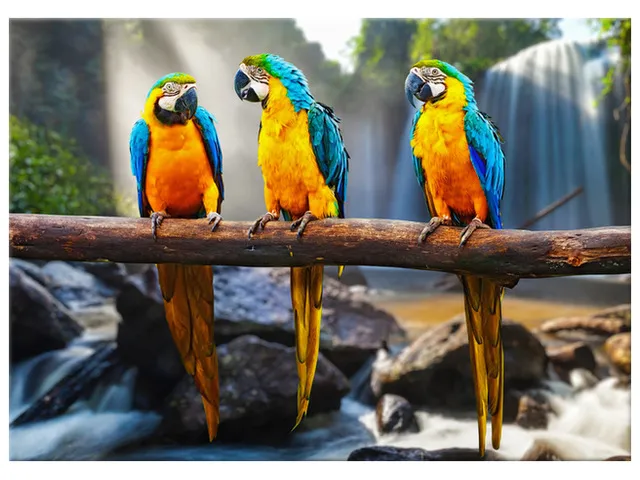 Úvod » Obrazy » Obrazy na plátne » Zvieratá » Moderný obraz Tri papagáje