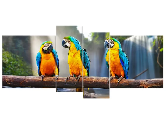 Úvod » Obrazy » Obrazy na plátne » Zvieratá » Moderný obraz Tri papagáje