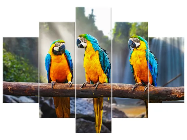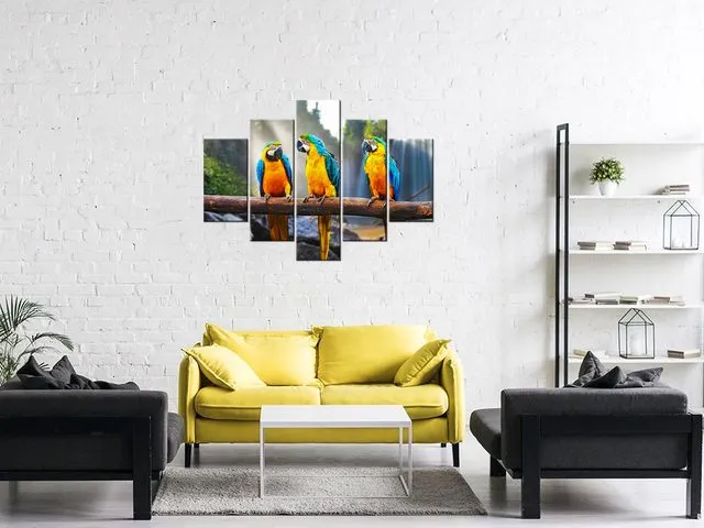 Úvod » Obrazy » Obrazy na plátne » Zvieratá » Moderný obraz Tri papagáje
