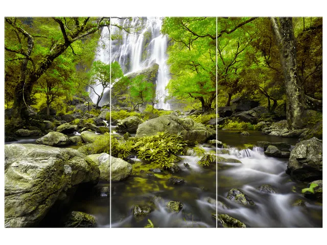 2484A_3M Moderný obraz Vodopád v zelenej |