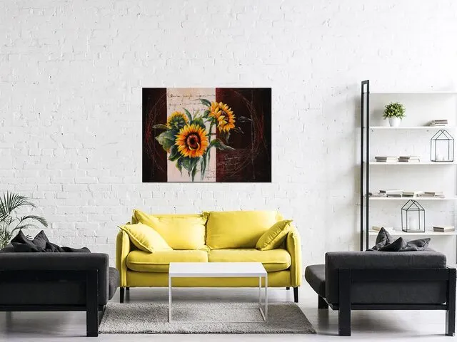 Úvod » Obrazy » Obrazy ručne maľované » Moderný obraz maľovaný na plátne Slnečnice inak